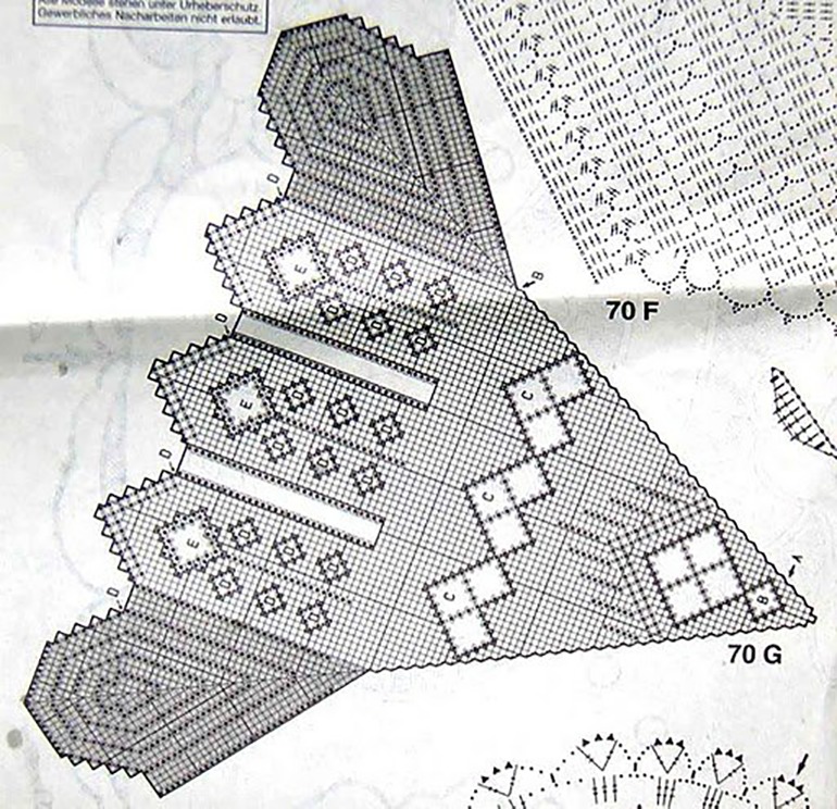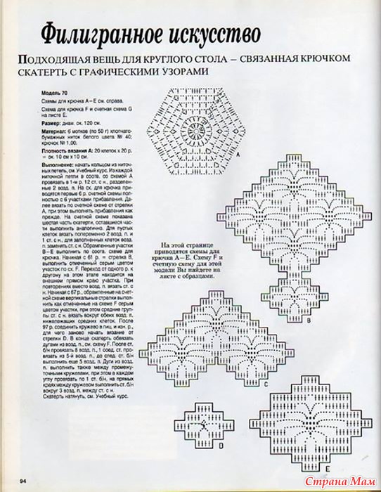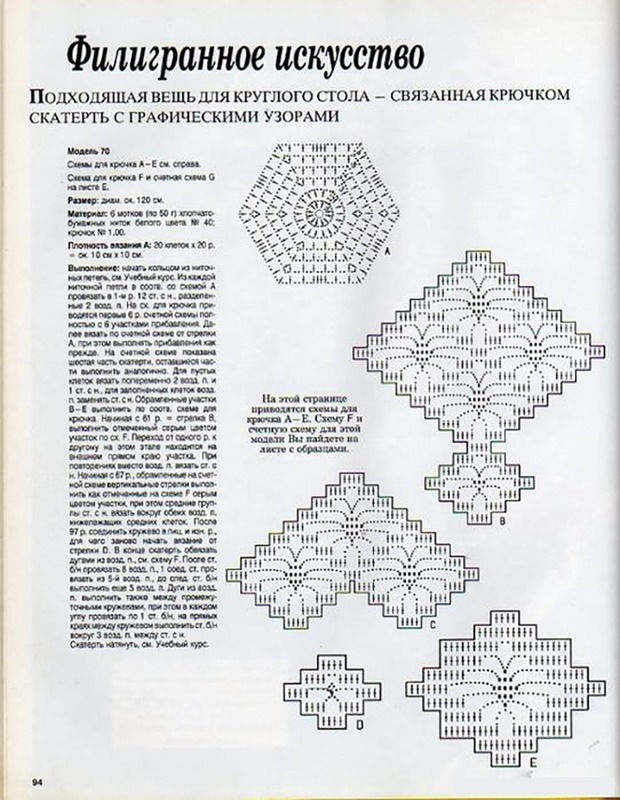 А в нем чудная скатерть филейной техникой. И вот именно тот лист, на котором схемы к ней самые важные, пропал. Подозреваю, что он мирно лежит у родителей в доме, но не уверенна. В инете нашла только саму книгу, схем нету. Если у кого есть лист от этой книги под буквой Е, пожалуйста, помогите мне схемами к модели 70. Я вам буду ооооочень благодарна.