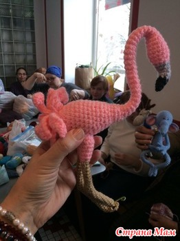 девушки фото моего недовязыша сделали на встрече клуба 28 петель...вот теперь хочется похулиганить, связать птицу на спине, а голову перекинуть через плечо на грудь