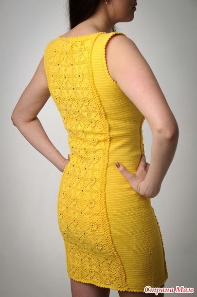 Боковые вставки вязала по выкройке, старалась посадить платье максимально идеально по фигуре.