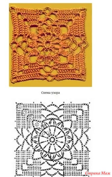 Схему мотива тоже прикладываю, но предупреждаю, что в столбиках делала 2 накида и количество ВП увеличивала соответственно. Ещё в 4-м ряду мотива, вместо столбиков с накидом и одной вершиной, вязала "кукурузки", так более рельефно и интересно смотрится, на мой взгляд.
