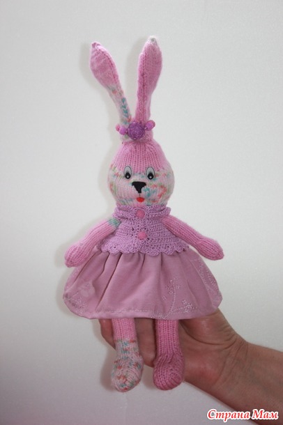Глядя на нее, понимаю, что теперь мне придется минимум две таких зайки вязать на подарок для малышек.