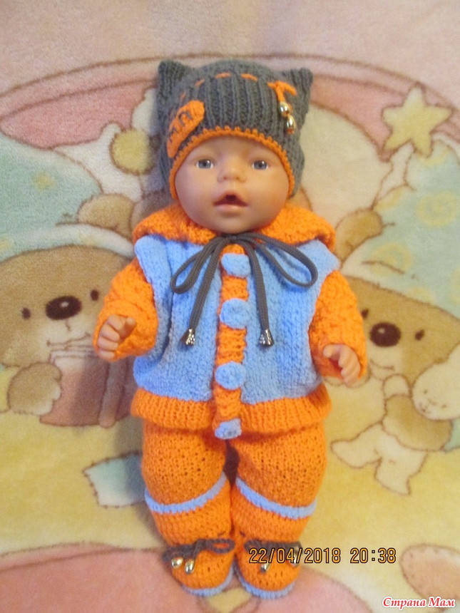Доброго времени суток! Представляю вашему вниманию комплект, связанный под впечатлением от комплекта "Мой бельчонок", созданного замечательным мастером под ником "Белый лебедь". Вязала по фото готового комплекта, описания нет. Пинетки и шапочка с ушками связаны крючком, всё остальное - спицами. Пряжа - "Детская новинка" и "Ализе софти". Цвет - ярко-оранжевый, на фото выглядит по-другому, за окном пасмурно, ярко не получается сфотографировать. Комплект состоит из кофточки с капюшоном на кнопках, штанишек, 2 шапочек, носочек и пинеток.