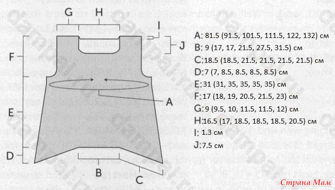 Размеры: Окружность груди – 81.5 (91.5, 101.5, 111.5, 122, 132) см.