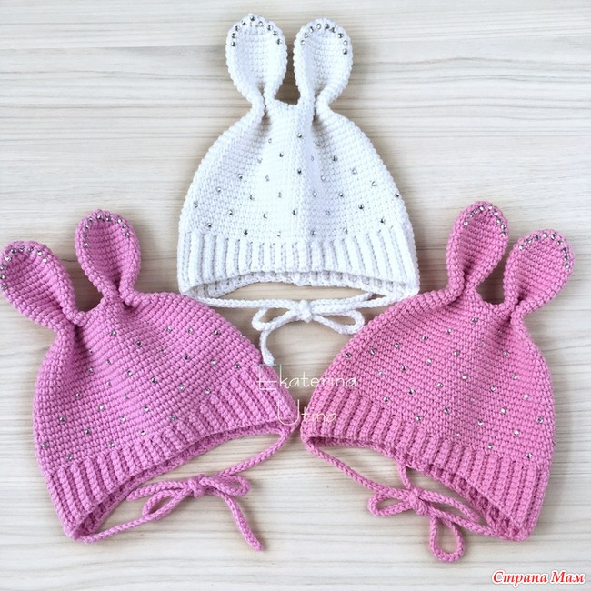 Может где-то уже и наступила тёплая весна, а где-то давно уже практически лето, но у нас в Северо-Западной части России все ещё прохладно. И чтобы наши куколки не мёрзли, получилась вот такая вот семейка шапочек-зайчиков с ушками.