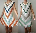 Это симпатичное платье связано от горловины диагональным узором в полоску. Этот узор очень стройнит фигуру. Здесь представленны два цветовых варианта.