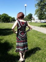 Подол платья довязала однотонными нитками, подобранными по цвету.