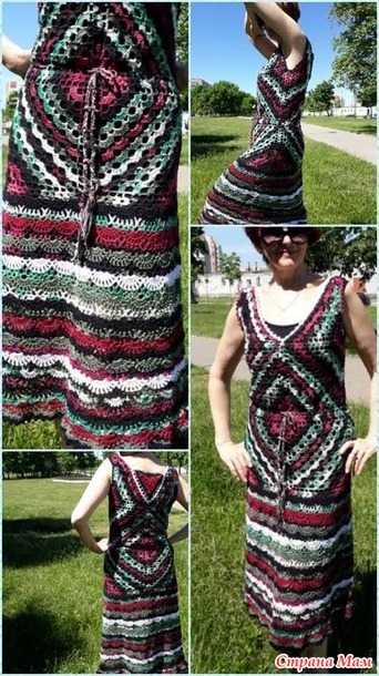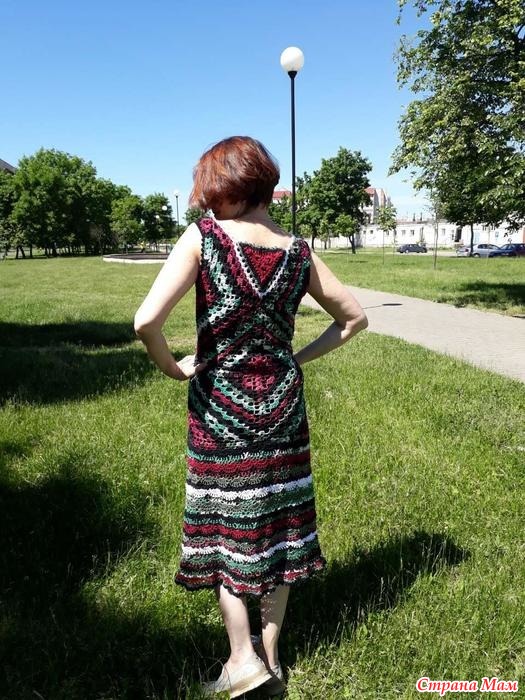 Подол платья довязала однотонными нитками, подобранными по цвету.