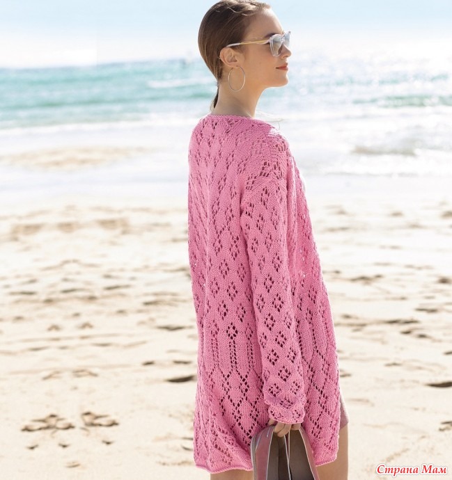 . Удлиненный ажурный кардиган спицами