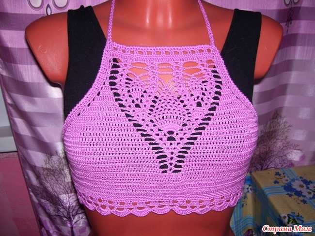 Учусь вязать крючком. Связала два кроп топа. Розовый из Сосо а сиреневый из дейси.