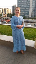 Технические характеристики - пряжа Семёновская лён Крестьянка (лен 33%, хлопок 34%, вискоза 34%) 1700/100 м. Связано в 3 нити, спицы (бамбук) от низа платья 3-2,75-2,5, лиф 2,25 и 2, рукава 2,5 и 2. Лиф украшен кристаллами,