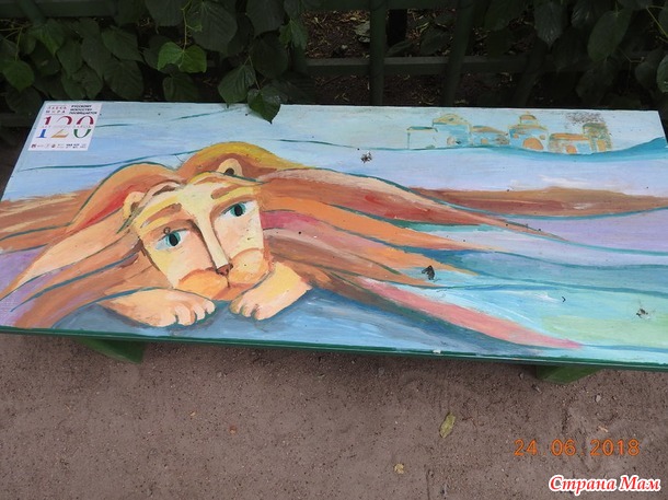Вокруг множество лавочек с различными картинами, очень хотелось присесть - сфотографироваться, но было очень мокро...