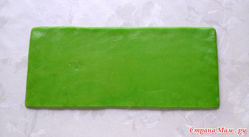 Зелёное тесто раскатать в прямоугольник 25*7 см.