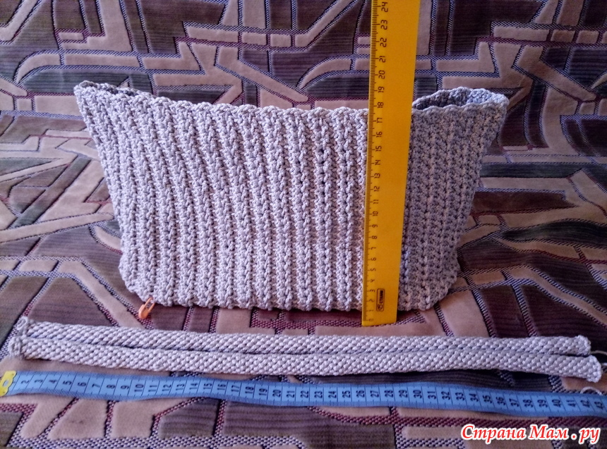 Провязала нужное мне кол-во см в высоту. Связала заготовки для ручек.