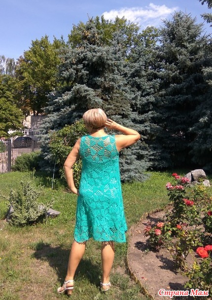 Приветик всем вяжущим и ждущим вдохновения. В перерывах между совместниками и тестами связала летнее платьице любимыми шестиугольными мотивами из индийского хлопка МАКИ. Цвет лагуна, 535м в 100г, вес 315 г, крючок 1,25. Силуэт трапеция, пыталась показать это в движении, надеюсь- удалось.