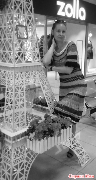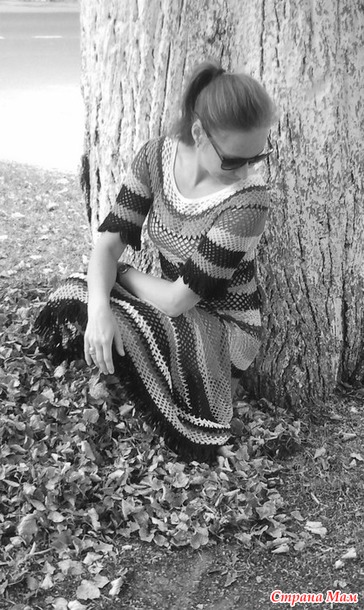 Пряжа хлопок, расход 350-400 грамм, крючок№2. Вязала по картинке, обычные арочки из пяти воздушных петель. Главной задачей было все правильно расчитать, перевязать уже не получалось, вязала с обрывом нити. Постоянно смачивала изделие, а то не понятно было как с прибавками как обстоит дело, как и на сколько потянется. Вязала по спирали, отмечала маркером начало нового ряда, так что у платья совсем нет швов.