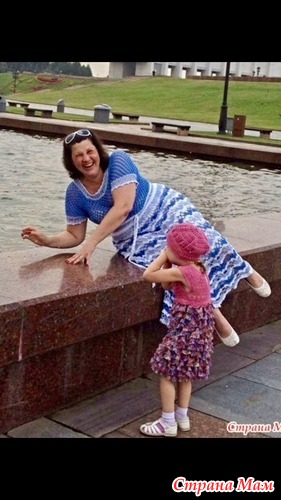 Пряжа хлопок, расход 350-400 грамм, крючок№2. Вязала по картинке, обычные арочки из пяти воздушных петель. Главной задачей было все правильно расчитать, перевязать уже не получалось, вязала с обрывом нити. Постоянно смачивала изделие, а то не понятно было как с прибавками как обстоит дело, как и на сколько потянется. Вязала по спирали, отмечала маркером начало нового ряда, так что у платья совсем нет швов.