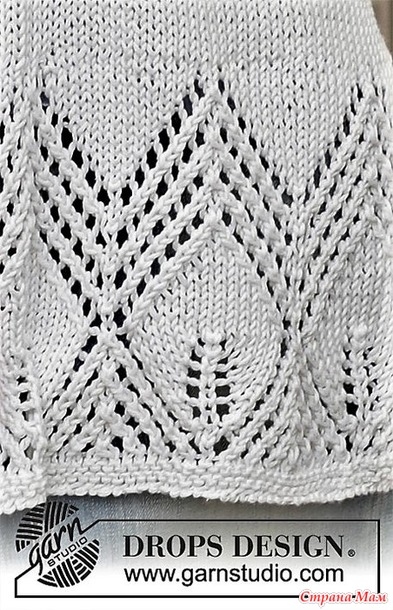 Плотность вязания: 17 п. х 22 р. лицевой гладью и 16 п. х 22 р. ажурным узором = 10 см х 10 см.