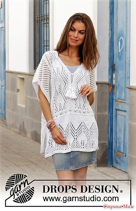 Вам потребуется: пряжа DROPS PARIS от Garnstudio 550-600-650-750 г цвет 16, белый; круговые спицы (60 или 80 см) № 5 мм.