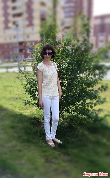 В последнее дни уходящего лета связала себе топ из остатков ниток. Нитки Daisy в 50 граммах 295 м, хлопок 100%. На мой 40-42 размер ушло 4,5 мотка, то есть чуть больше 200 грамм, крючки: 1,5; 1,3