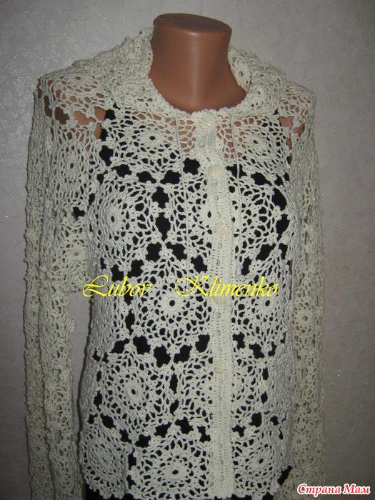 . Ажурный кардиган крючком с капюшоном