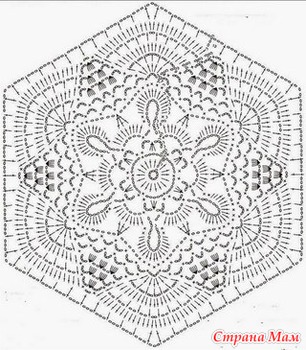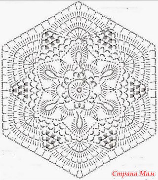 Решила, было, такими мотивами вязать и дальше. НО! Вовремя вспомнила, что моя подруга с ажурными работами на Вы, а значит возникнут проблемы с уходом за пледом. Нашла схему обвязки ажурных мотивов, чтобы максимально облегчить для подружки ВТО изделия. Использовала элементы вот такой интернетовской схемки: