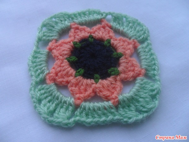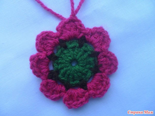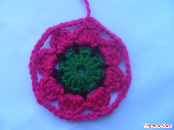 сс до центрального стсн лепестка1 вп(не сч.п.) + 5 вп, * стбн в центральный стсн след.лепестка, 5 вп * от * до * повторить.