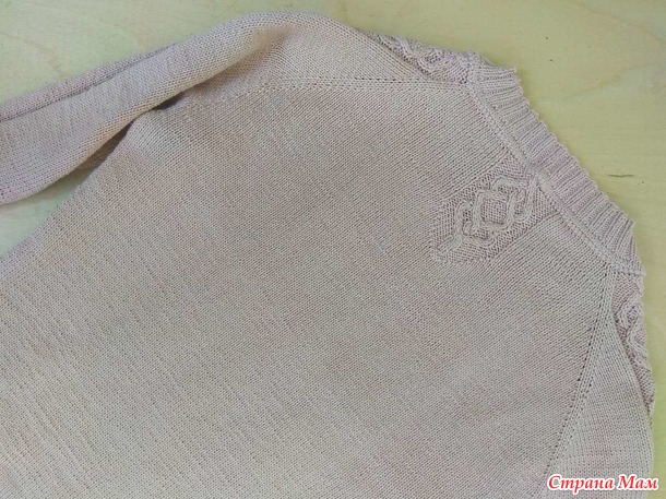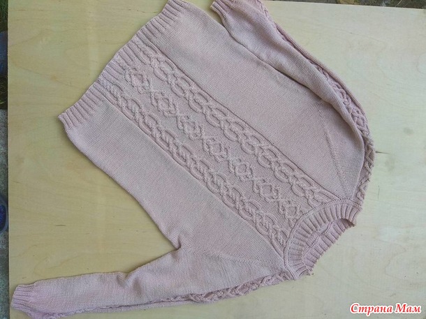 Реглан сверху.Набрала 152 петли.На линии реглана 8 петель.На рукава по 16 петель, спинка-50 петель, перед 62 петли.Росток 8 рядов.Прибавки по линии реглана первые 12см в каждом лицевом ряду, следующие 12 см -через лицевой ряд .Длина линии реглана 24 см,подрезы на рукава 12 петель.