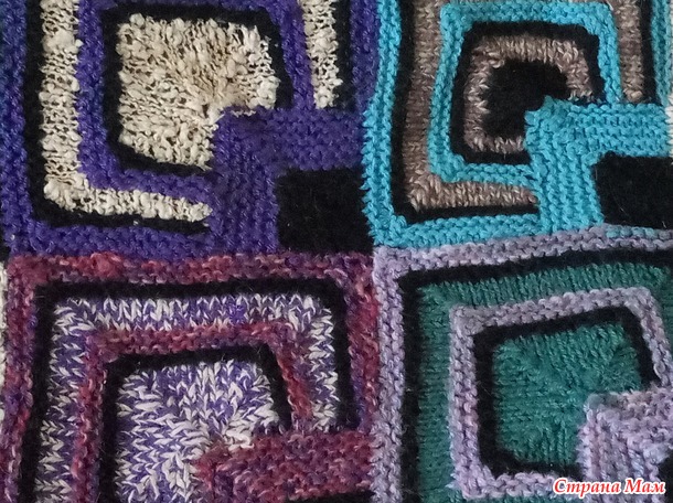 Квадратики связаны из старых свитеров, джемперов и кардиганов, которые жалко было выкинуть, так как до дыр их не занашивали, а связаны они были из хорошей натуральной пряжи.