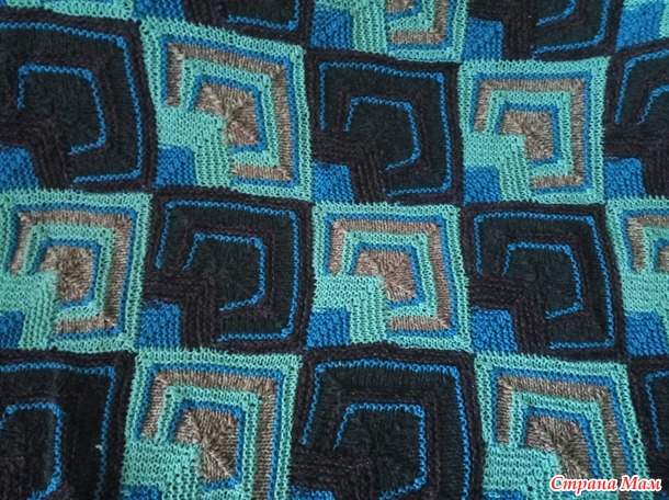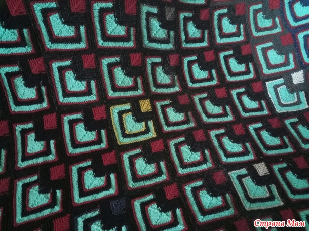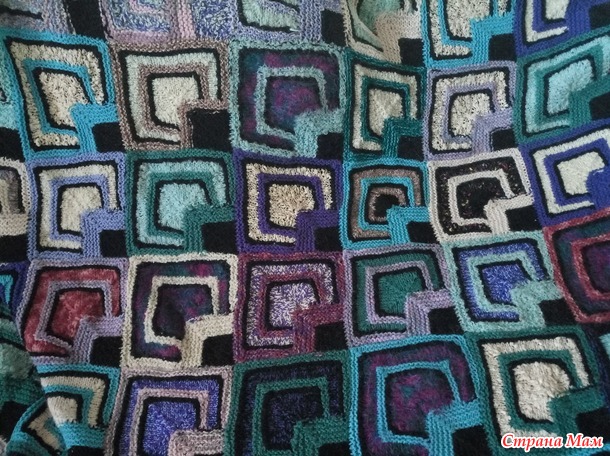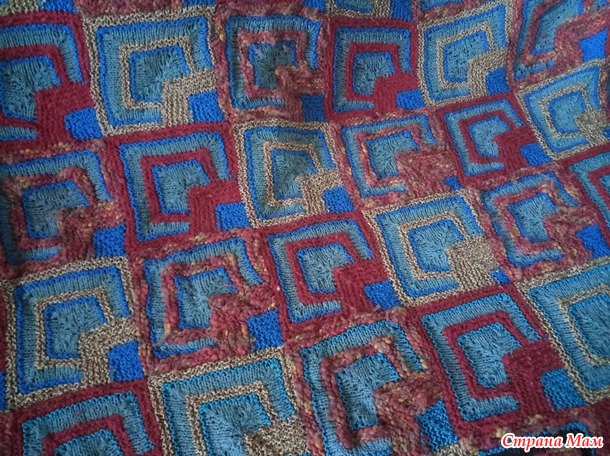 Ну так вот.. Пледы вяжутся довольно быстро, квадратики большие, как и крючком один привязывается к другому, только не финале, а, наоборот, в начале вязания, т.е. петли набираются по стороне уже связанного квадратика.