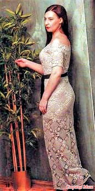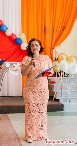 Это великолепное платье цвета пудры выполненно из красивых ажурных мотивов которые имеют одинаковую схему но разные по величине и чередуются горизонтально.Оно нежное и очень нарядное!