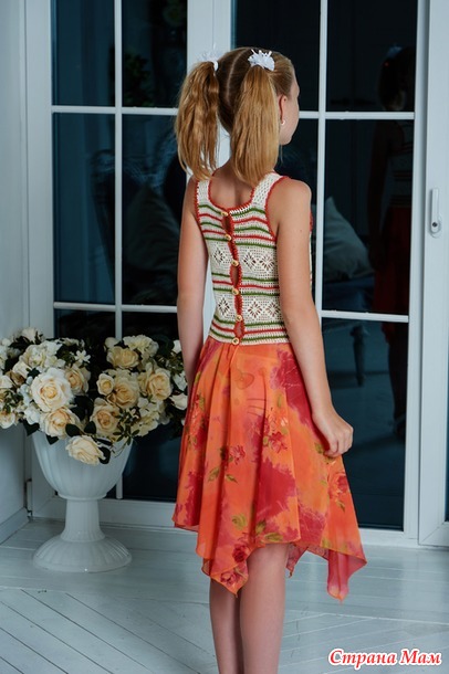 Да, этого у него не отнять. Вообще идея комбинированного платья мне очень понравилась, буду еще искать варианты. Все-таки вязаные юбки сильно утяжеляют вещи, а ажурный верх хорош для жары.