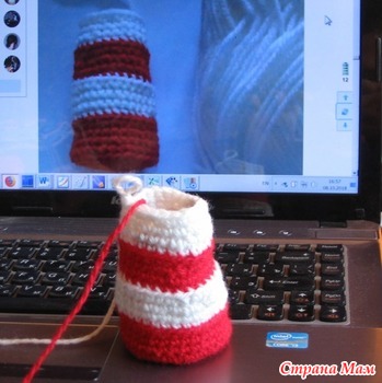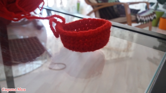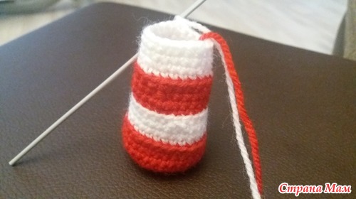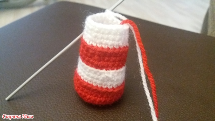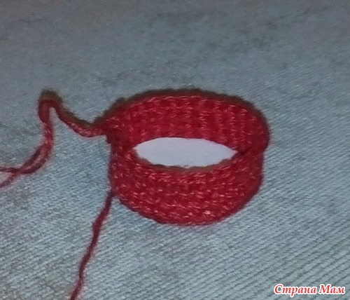 Вяжем по спирали. Начинаем красным цветом: