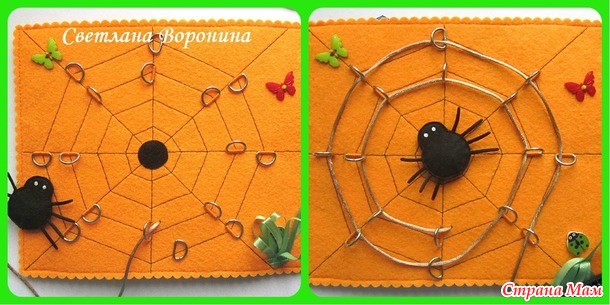 5 страница - паутина. В полукольца продеваем шнурок, осваивая застежку шнуровка.