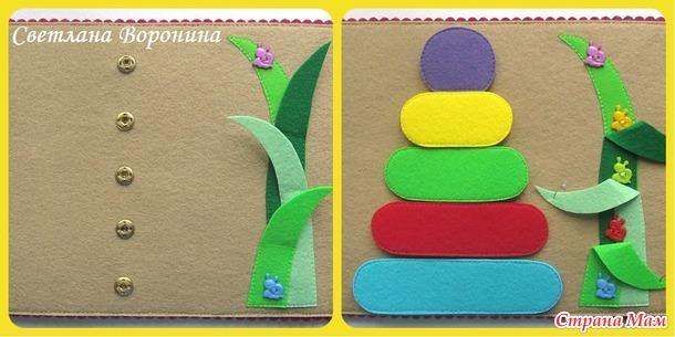 1 страница - пирамидка. Детали крепятся к странице на кнопки.