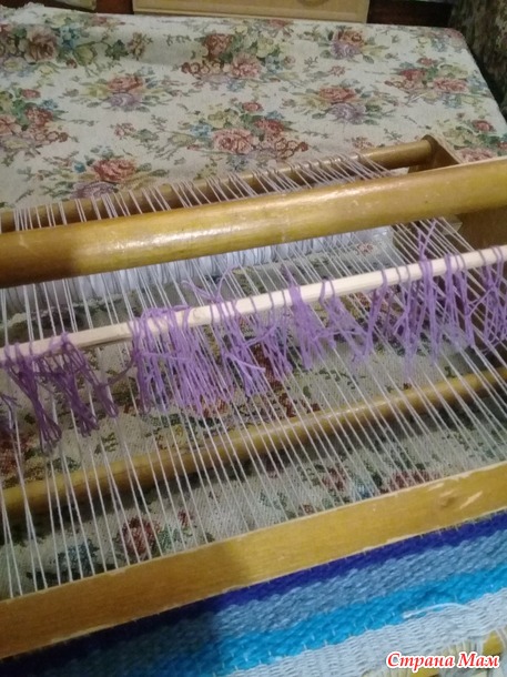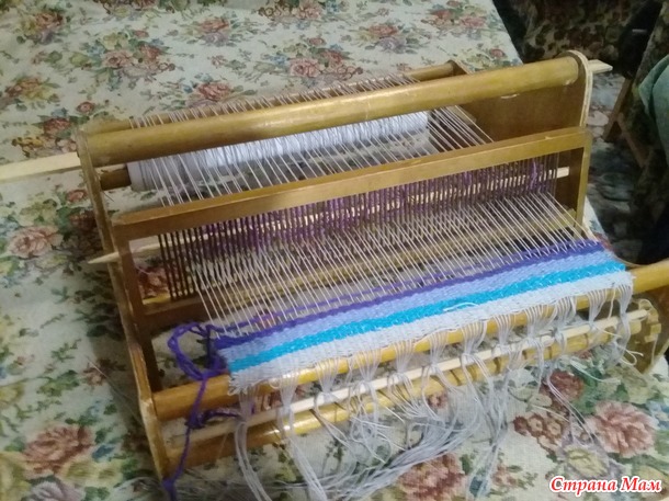 Перепал мне по случаю станочек ткацкий, игрушечный. Не знаю в каком году сделанный. У знакомой на сарае завалялся. Она и отдала за ненадобностью. А мне в самый раз. Вечером после работы за большой станок садиться сил нет, а тут в самый раз, можно в кровати киношку смотреть и ткать.