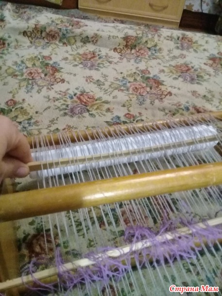 Видимо были ремизы, чтоб зев менять, да вот не сохранились. Ну я один зев на линейке держу, а для другого полуремизку навязала.