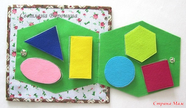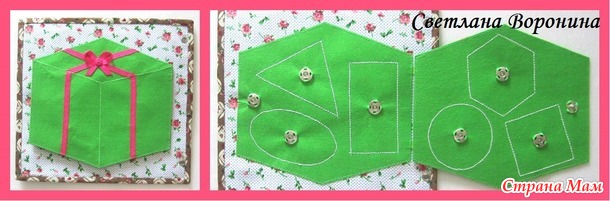 7 страница - подарок. Закрывается на кнопку. Внутри прошиты силуэты геометрических фигур.