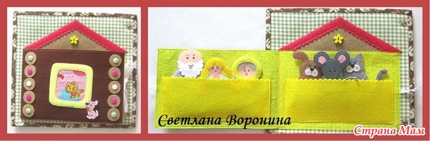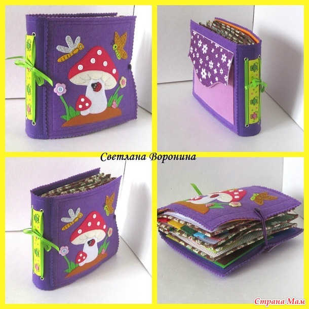 Обложка книжки из фетра, страницы - из хлопка. Размер страницы 20*22 см.
