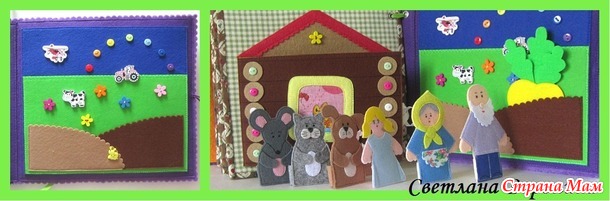 10 страница - поле для показа сказки "Репка". Пальчиковые куклы из фетра шагающие. Обратите внимание, что персонажи могут стоять самостоятельно.