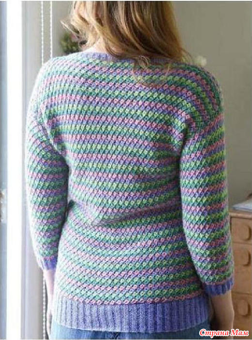 Многоцветная кофта спицами, ажурным узором "анемоны"