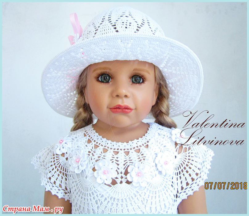 Платьице пришлось вязать в большем размере. В юбке связала на один волан больше.