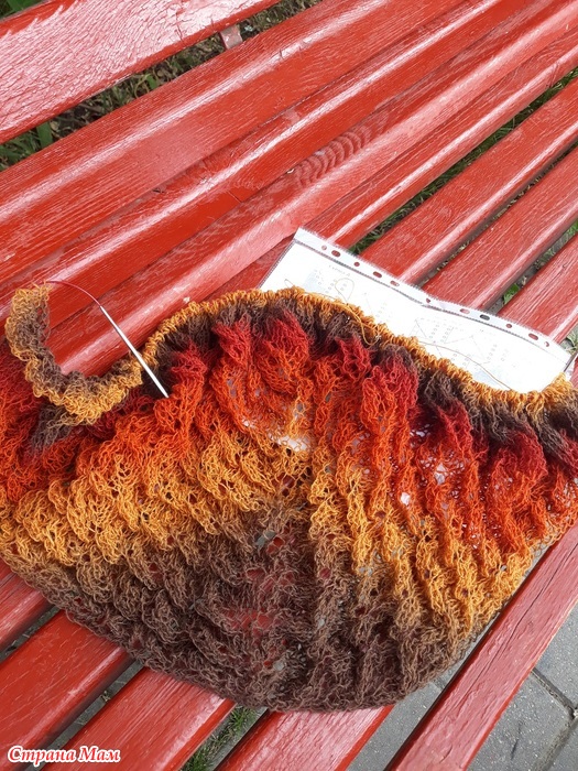 . К колючести пряжи я отношусь спокойно, а расцветки нитки сглаживают сей фактор.Шали вяжу и дарю хорошим людям, вот и "Харуни" постигла та же участь