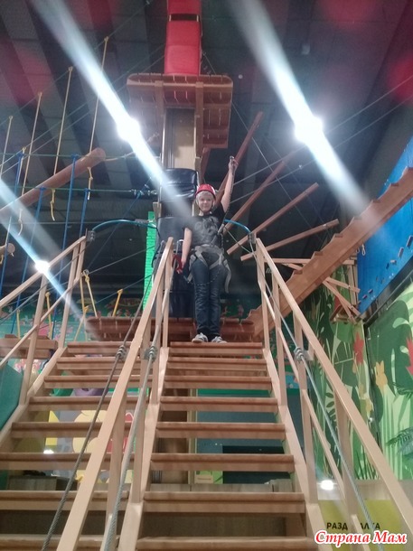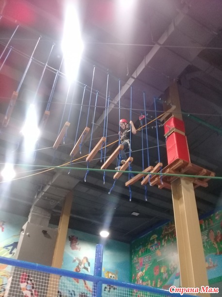 В прошлое воскресенье (7.10) в Златоуст ездили, Возили детей в ТРЦ. В первую очередь в экстрим-парк. "Отрыв" называется.Верёвочный парк, 2 маршрута, попроще и посложнее. Сашка оба прошёл. А я... не, я естественно никуда не полезла, куда уж мне с моими килограммами. Мне хватило впечатлений "на берегу".Это ж жуть какая, когда на такой высотище твой ребёнок ползёт по досочке! (Было там одно место, где нужно было развернуться, ну то есть поменять верх с низом.Фоткала и снимала сколько могла, чтоб потом папу впечатлить. Фоток получилось мало, телефон не зарядила потому что нормально.