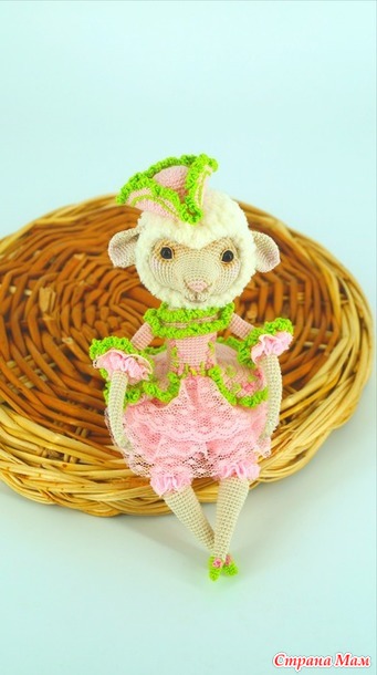 Нитки -тонкий хлопок, крючок 0,75, набита опилками, глазки стеклянные. Голова на шплинтах, ручки-ножки подвижные.
