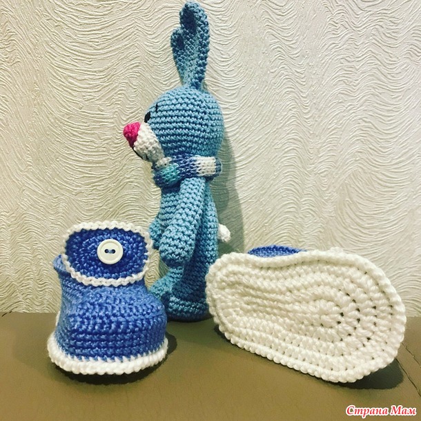 Тэги: для новорожденных, мальчикам, малышам, крючком, пинетки крючком, пинетки-туфельки крючком, зайчик, зайка крючком, комплект крючком, подарочный набор, зайка в снуде