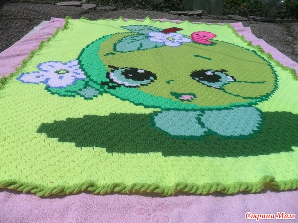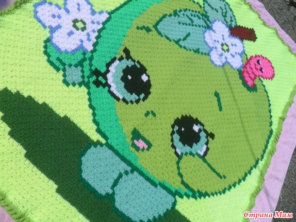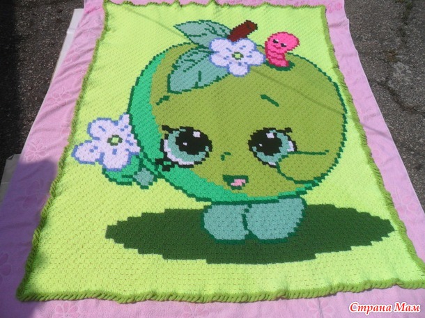 Тэги: вязание крючком, детский плед, плед яблочко, с2с, ручная работа