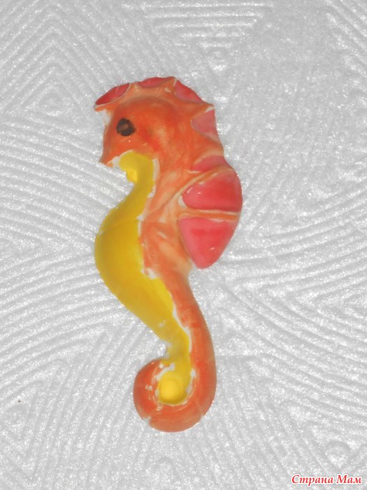 Часто морской конек идет в наборе с куклой. Многих кукол и игры"Рыбалка" я дарила на сайте Дару Дар, а себе оставляла только конечка. Но иногда оставляю и набор полностью.