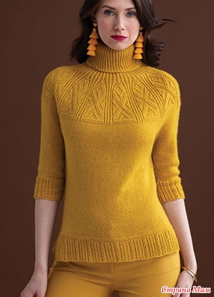 Свитер вяжется снизу вверх с рисунком со жгутами на резинке и кокетке.