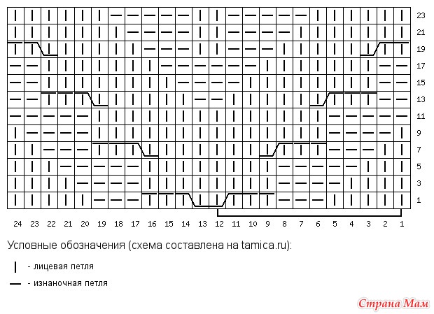 Я взяла за основу схемы, которые приводятся по ссылках выше, и нарисовала свою с учетом этих замечаний. Отличие в петлях 7-8 в 3 и 5 рядах.