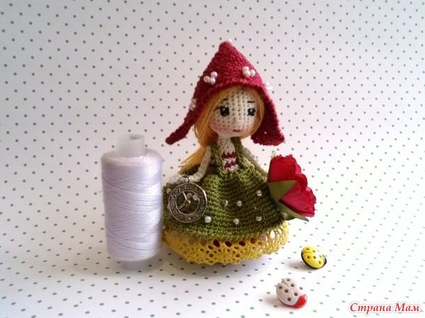 Куколка миниатюра рост 8 см , ирис , крючок 0,8 . Я все еще эксперементирую , пока не пришла к внутреннему равновесию , может быть это и есть двигатель прогресса ?